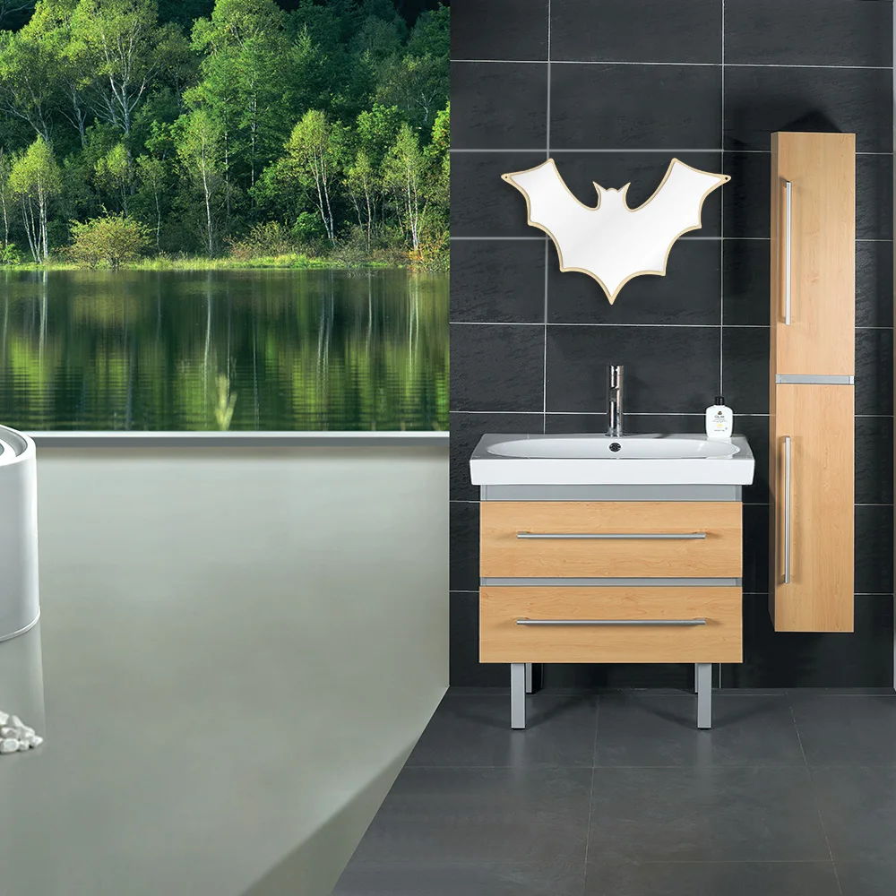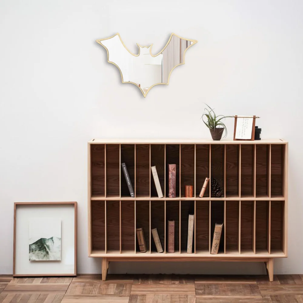 Bat Shaped Wall Mirror Halloween Hanging Bat Arylic Mirror With Wooden Back Table Top Or Wall Mount Makeup Mirror
