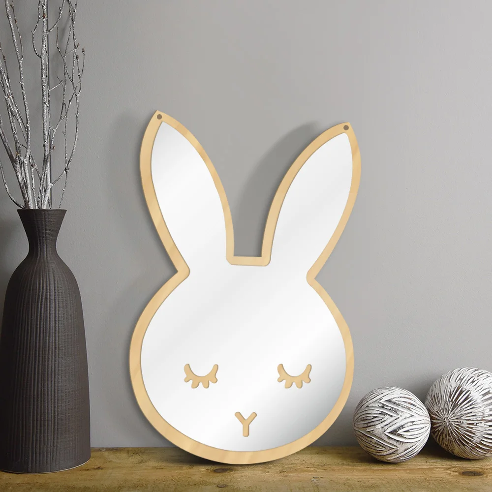 Bunny Sleepy Eyes Makeup Mirror Baby Kids Room Nursery Cute Animal Sleeping Rabbit Wood & Acrylic Safety Wall Mirror
