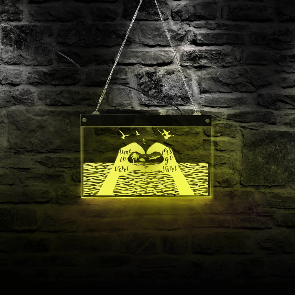 Time To Travel LED Neon Wall Sign Inspirational Tourist Bureau Vacation Home Bar Lighting Sign Travel